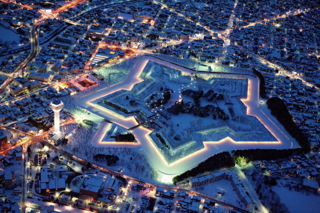 Satu lagi event menarik di Hakodate adalah Hoshi no Yume, yang berarti “mimpi berbintang.” Event ini menghadirkan iluminasi berbentuk bintang raksasa di Goryokaku, benteng berbentuk bintang yang terkenal. Kamu bisa melihat keseluruhan bentuk bintang dari Goryokaku Tower, menciptakan momen fotografi yang sangat instagenic.