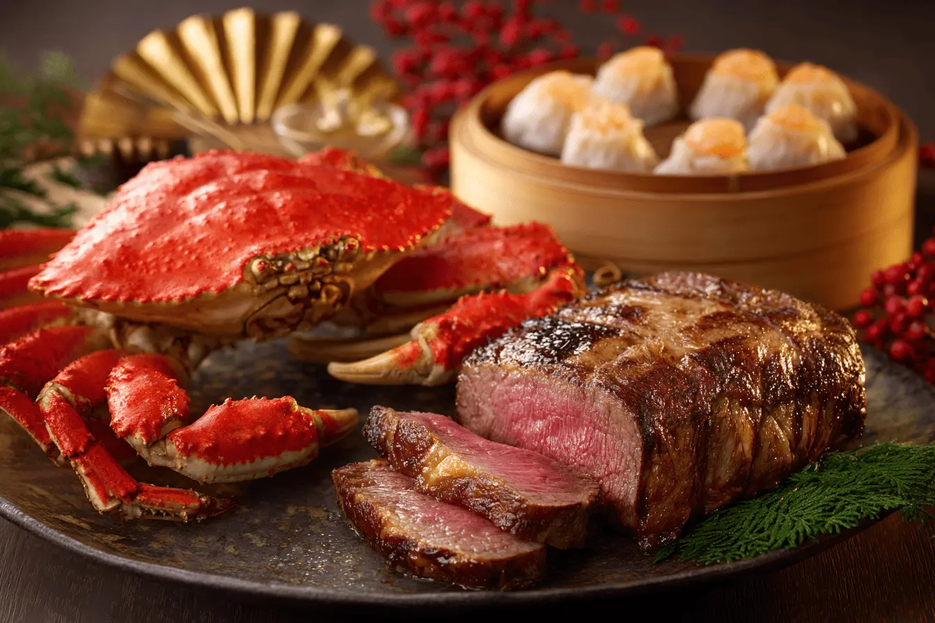Seafood feast: Sea urchin flan wreath, lobster ravioli, beef foie gras truffle. Tanggal: 24-25 Desember 2025. Harga: Dari ¥22.000. Highlight: Modern seafood luxury.