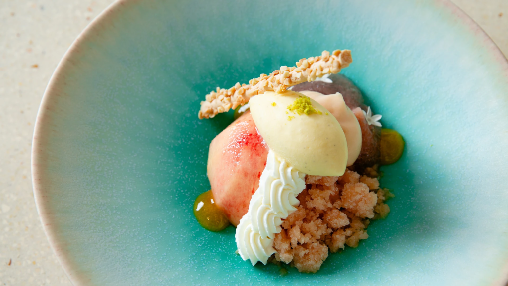 Restoran nama chef pastry Haruka Murooka (buka April 2024) punya hanya 6 kursi counter menghadap open kitchen. Murooka ambil buah & sayur segar langsung dari petani Jepang untuk 9 course omakase. Dapat Michelin Guide Tokyo 2025 Selected (Creative category) – salah satu sedikit restoran fokus dessert & buah di kota ini. Contoh summer: peach Yamanashi dalam berbagai bentuk – peel jelly, kakigori, seared slices. Savoury sentuhan seperti edamame focaccia & corn soup mozzarella-truffle bikin balance. Ditutup matcha & wagashi. Harga mulai ¥27.500 (termasuk pairing wine/fruit cocktail/non-alkohol). Reservasi via website – tempat kecil, cepat penuh.