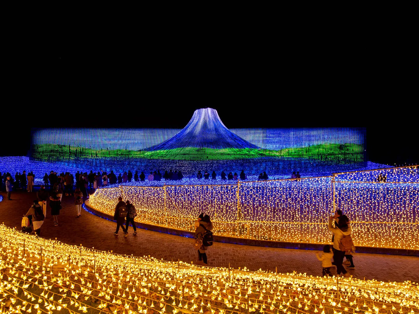 Iluminasi di Nabana no Sato termasuk yang terbesar di Jepang. Sorotan utamanya adalah Great River of Light, pemandangan Mt. Fuji LED setinggi 35 meter, serta terowongan cahaya sepanjang 200 meter yang dipenuhi lampu champagne-gold berbentuk bunga.