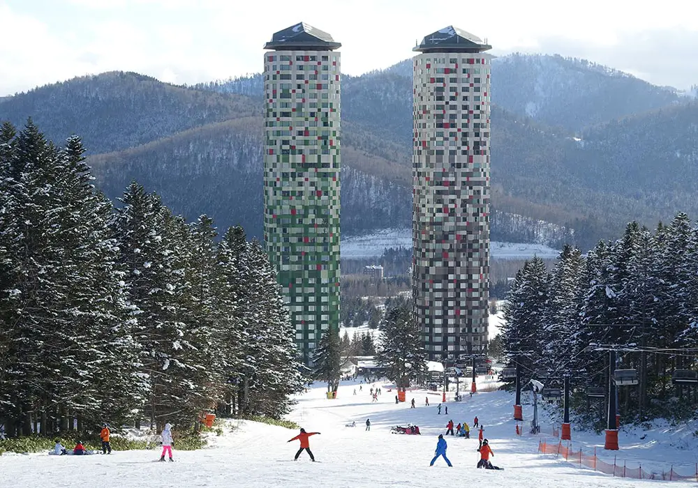 Tomamu bukan sekadar tempat main ski. Ini adalah resort besar dengan atmosfer premium yang menawarkan pengalaman liburan musim dingin secara menyeluruh. Di sini kamu akan menemukan hotel-hotel tinggi dengan arsitektur futuristik berdiri megah di tengah salju—kontras namun memukau.