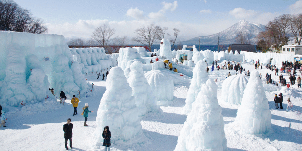 - Musim Dingin (Desember–Maret): Ski, snowboarding, festival salju, ryuhyo cruise di Abashiri.