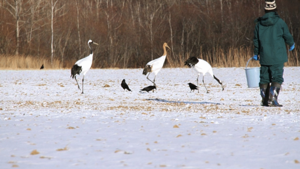 Selama musim dingin, pengunjung bisa menyaksikan bangau berdiri anggun di atas sungai yang membeku atau berpasangan di tengah kabut pagi. Banyak penduduk lokal percaya bahwa burung ini membawa simbol keabadian dan kesetiaan, sehingga sering digunakan dalam motif kimono dan seni Jepang klasik.