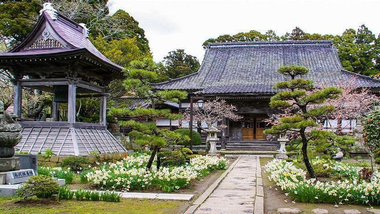 Pendakian singkat selama 20 menit akan membawa pengunjung ke sebuah pondok kecil di pertengahan gunung, dengan deretan patung Buddha dan monumen batu di sepanjang jalur. Pemandangan dari atas menampilkan panorama kota, laut, dan hamparan bunga sakura yang memesona.